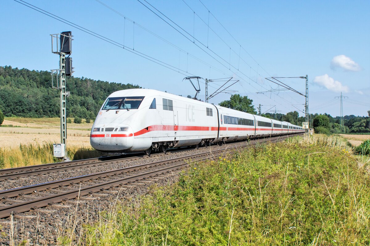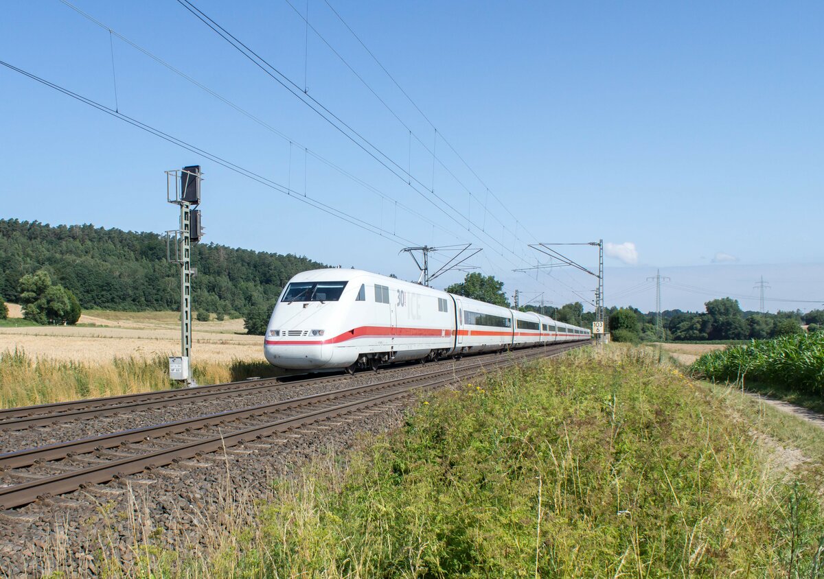 Ein ICE 1 kommt hier an der Landesgrenze Nordrhein Westfalen zu Niedersachsen in Natrup Hagen um die Kurve und ist am 20.7.2021 um 17.21 Uhr zum nächsten Halt in Osnabrück unterwegs. Gerd Hahn