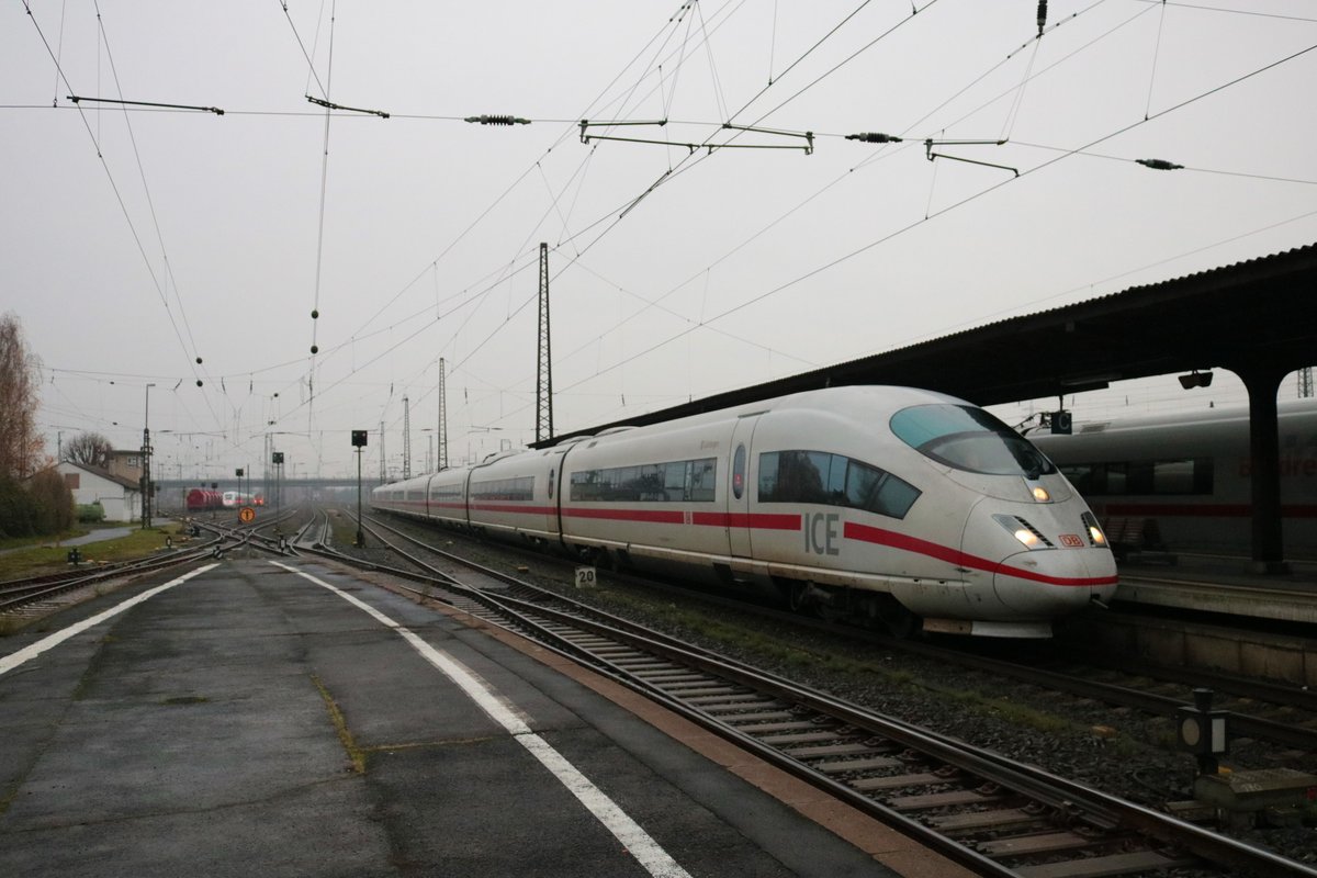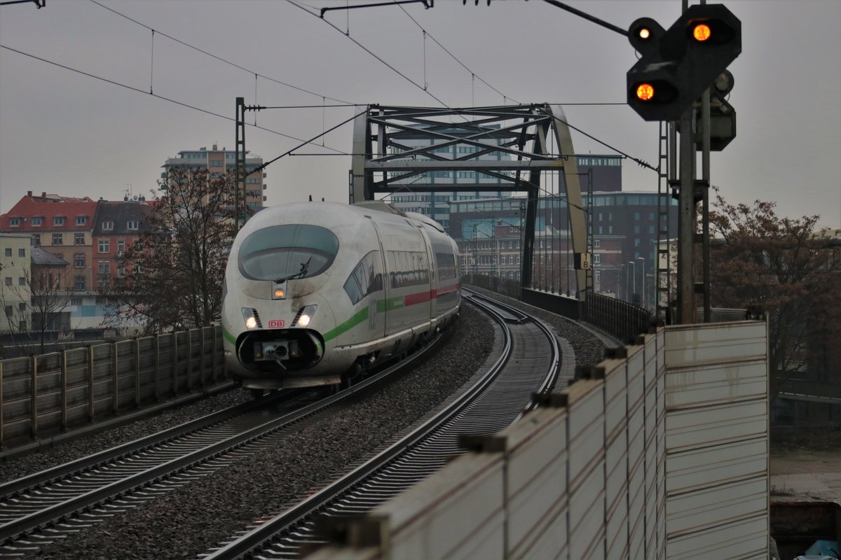 Nachschuss auf 403 559-8 "Leverkusen", als dieser am späten Nachmittag des 23.04.2020 südlich von Buggingen als ICE 102 (Basel Bad Bf - Hannover Hbf) über die Rheintalbahn in Richtung Freiburg (Breisgau) fuhr. Tobias Schmidt