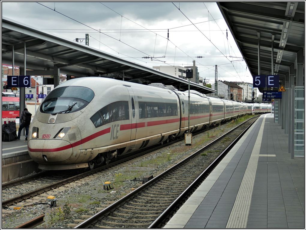403 005-2 (Tz 305 "Baden-Baden") als verspäteter ICE 516 (Linie 42) von München Hbf nach Dortmund Hbf fährt in Uhingen auf der Bahnstrecke Stuttgart–Ulm (Filstalbahn | KBS 750).