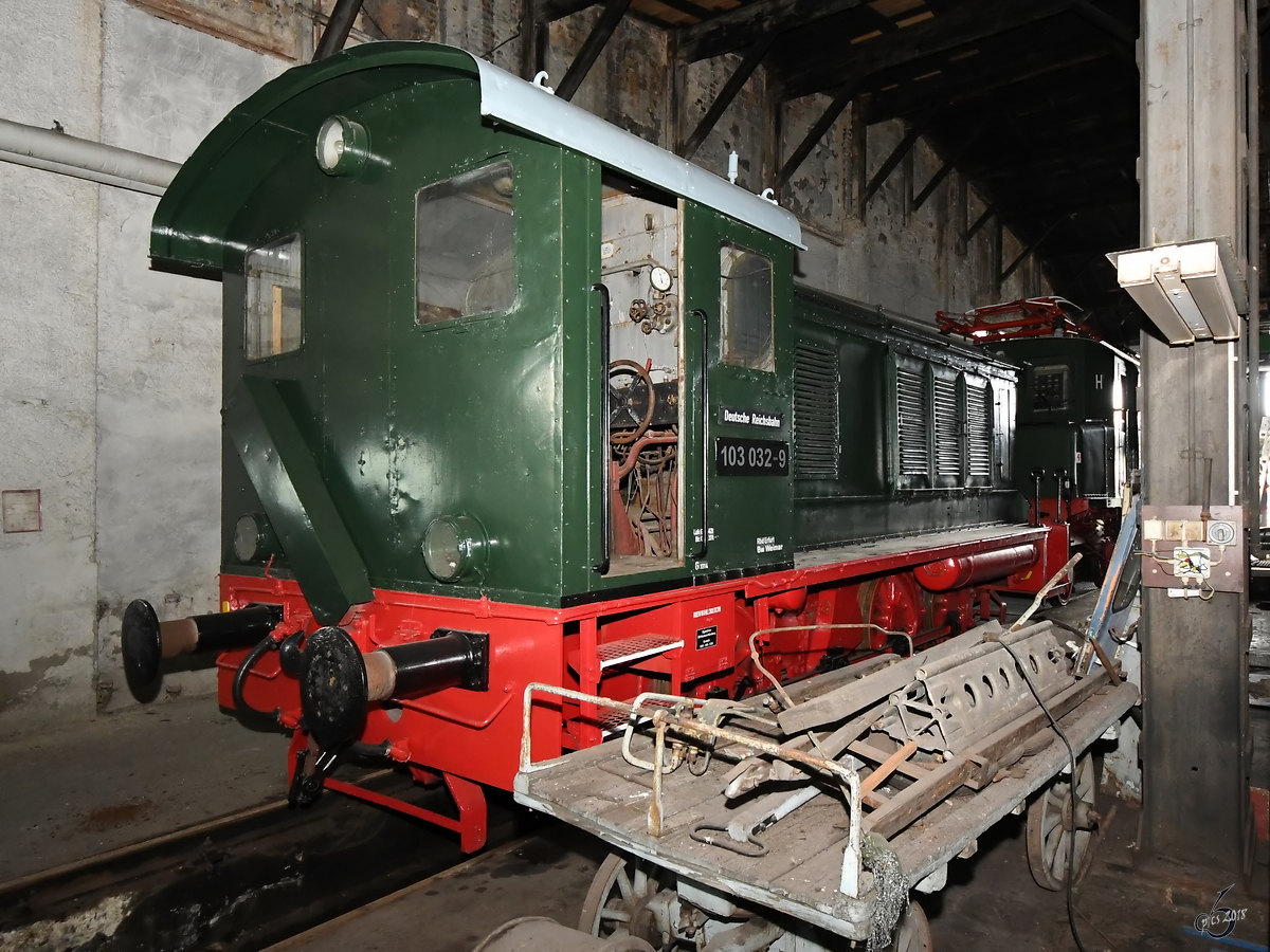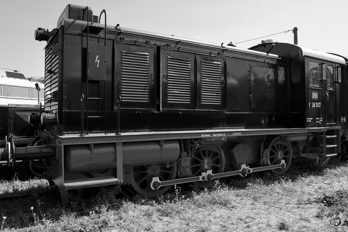 236 103-8 (DR V 36 | Wehrmachtslokomotive WR 360 C 14) des Eisenbahnmuseums Arnstadt steht anlässlich des Sommerfests unter dem Motto "Diesellokomotiven der ehemaligen DR" auf der Drehscheibe des DB Musems Halle (Saale).