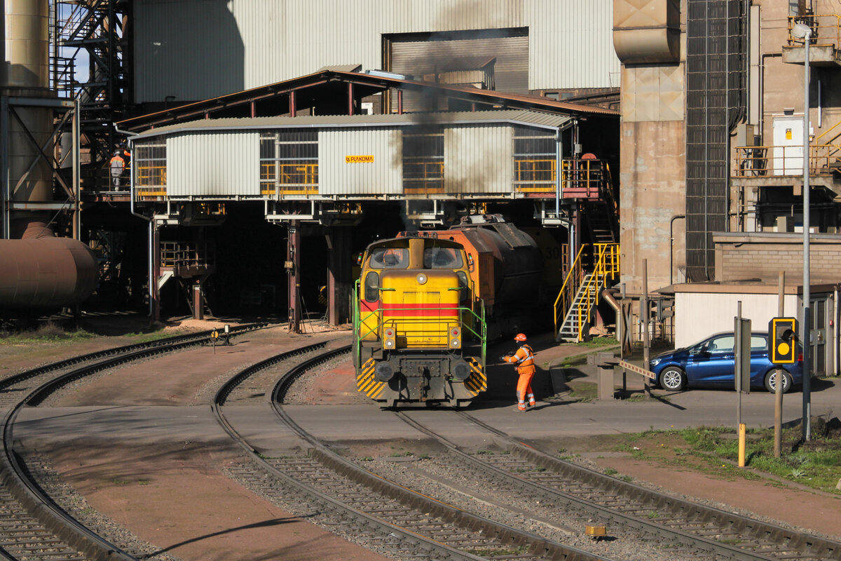 Hübsch ist sie geworden. SaarRail (Saarstahl) Lok 72 beim Rangieren in Völklingen.