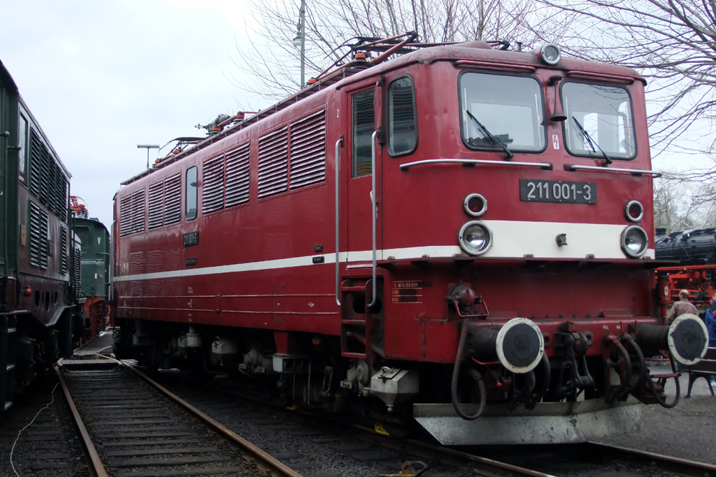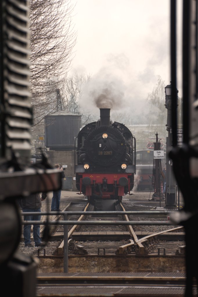 Durchblick - zwischen E 94 (links) und E 18 (rechts) - auf P 8 (38 2267) während der Museumstage im Eisenbahnmuseum Dahlhausen. (13.04.2012) Peter Heck
