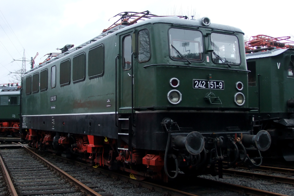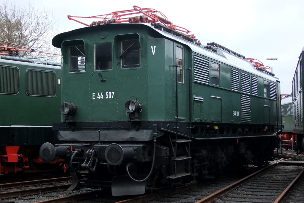 E-Lokparade (243 117-9, E42 151,E04 11, E44 507, E32 27, E94 080 und E18 047) während der Museumstage im Eisenbahnmuseum Dahlhausen. (13.04.2012) Peter Heck