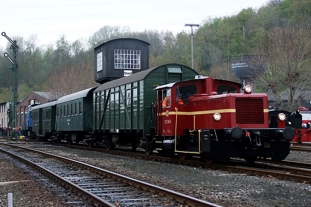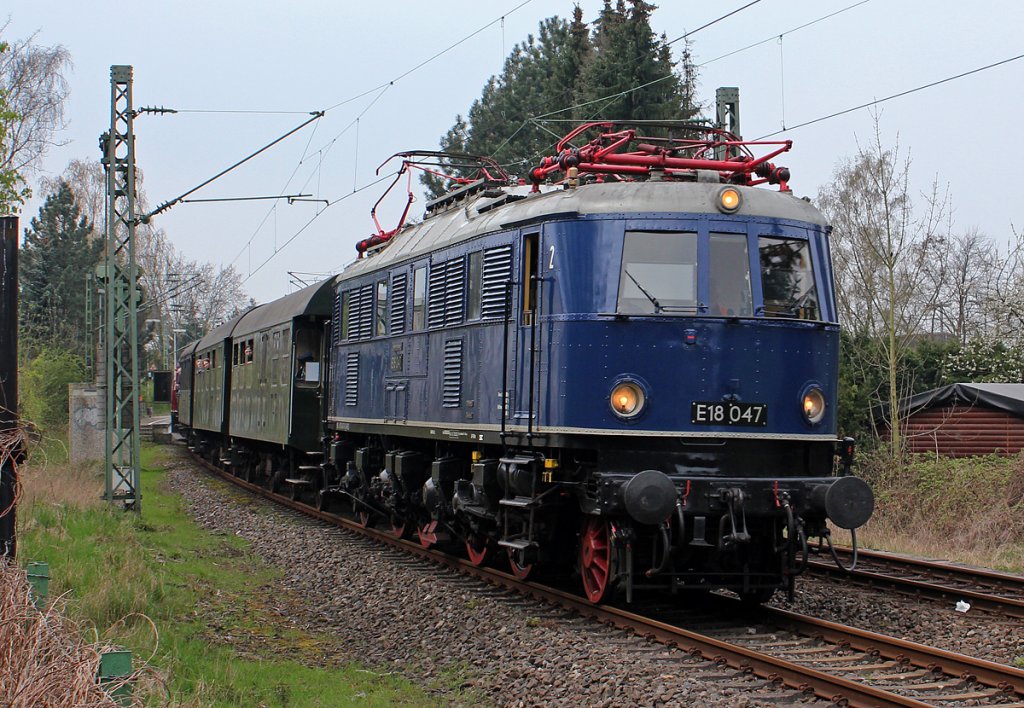 E 18 047 mit dem Museumszug anläßlich der Museumstage im Eisenbahnmuseum Bochum-Dahlhausen am 15. April 2012 bei der Ausfahrt aus Bochum-Dahlhausen. Manfred Kopka
