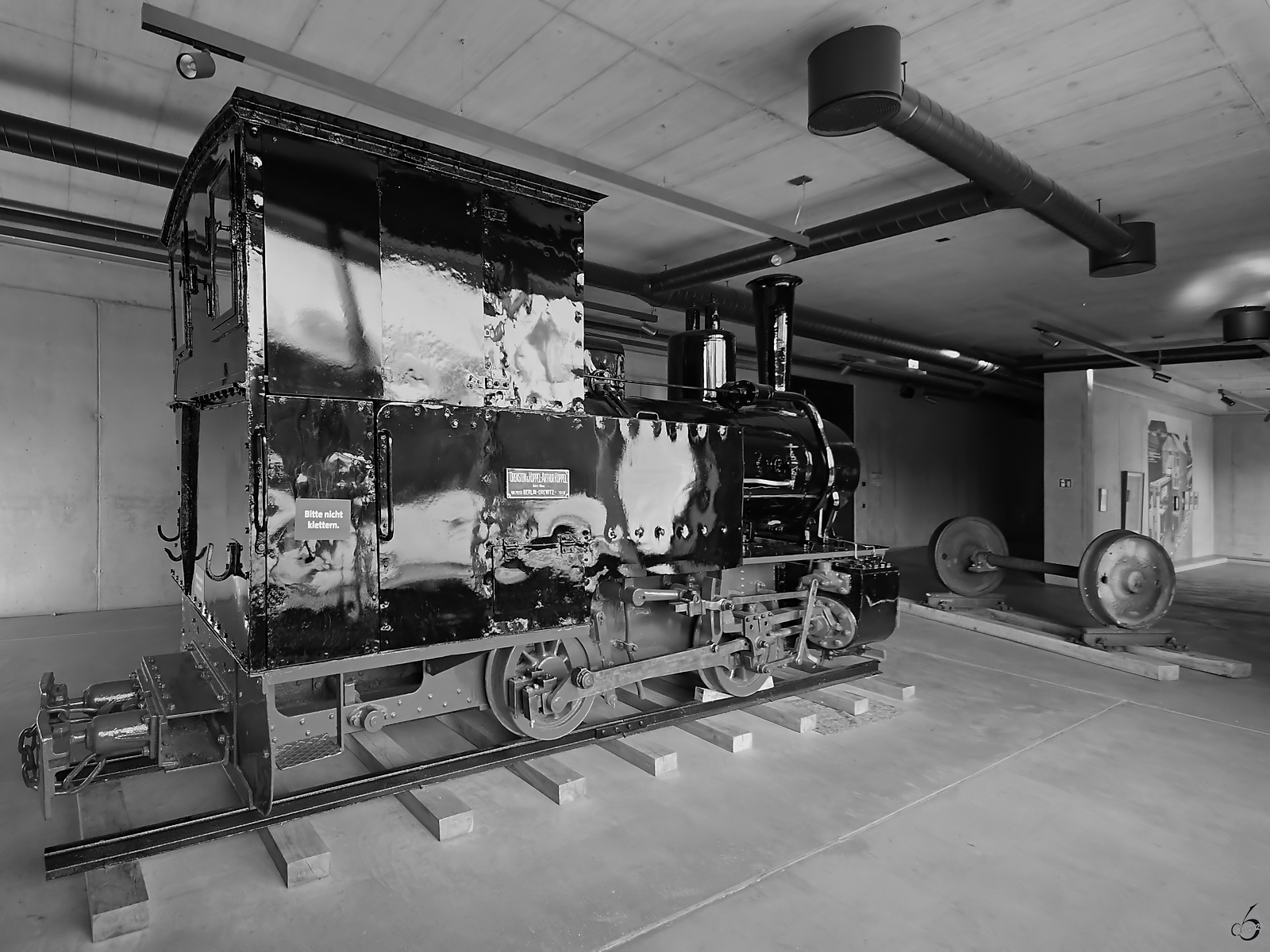 Die 600mm-Schmalspur-Dampflokomotive mit der Werknummer 7610 wurde 1918 bei O&K in Berlin-Drewitz gebaut und wird aktuell im Eingansbereich des Eisenbahnmuseums in Bochum-Dahlhausen als "V 1" ausgestellt. (April 2025) Christian Bremer