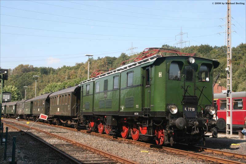 Die legendäre Stangen-Elektrolokomotive E77 10 (Bj.1925) vom Verein IG Bw Dresden-Altstadt für den Pendelzug von Bo. Dahlhausen zum Hbf Bochum. Auf dem Museumsgelände geschoben von 212 007-9. 20.9.08 Michael Berling
