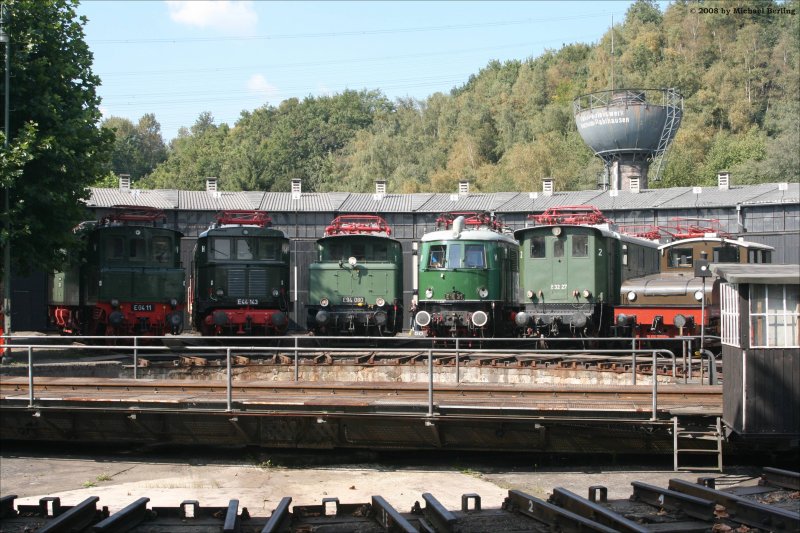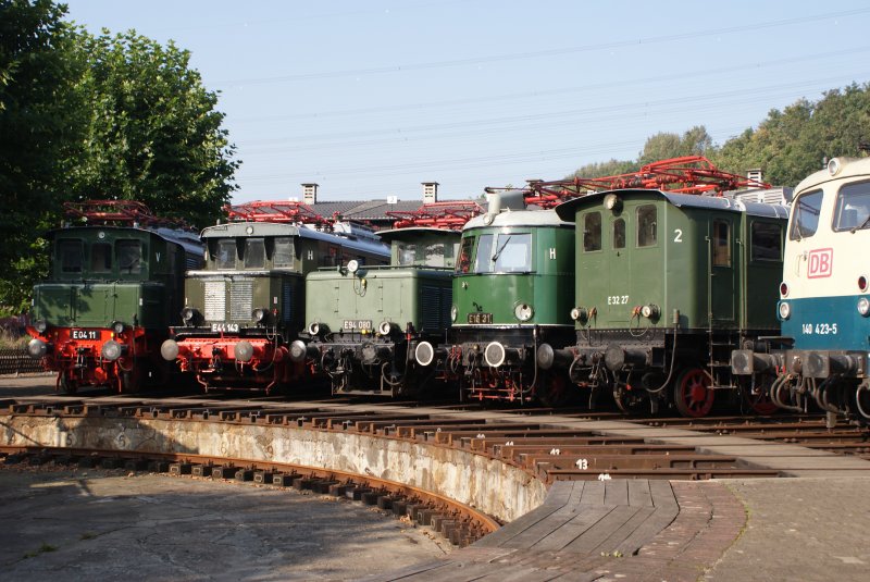 E04 11, E44 143, E94 080 Bj.1942, E18 31, E32 27 Bj.1925 und LPD Berlin Nr.3 Bj.1913.