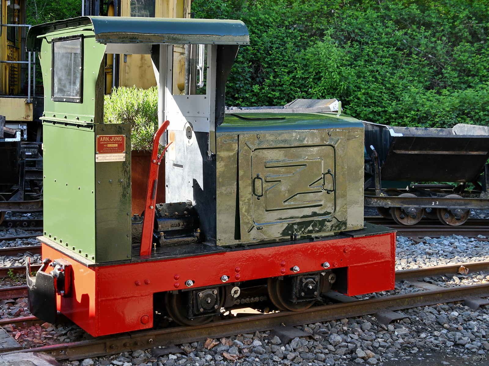 Die 600mm-Schmalspur-Dampflokomotive mit der Werknummer 7610 wurde 1918 bei O&K in Berlin-Drewitz gebaut und wird aktuell im Eingansbereich des Eisenbahnmuseums in Bochum-Dahlhausen als "V 1" ausgestellt. (April 2025) Christian Bremer