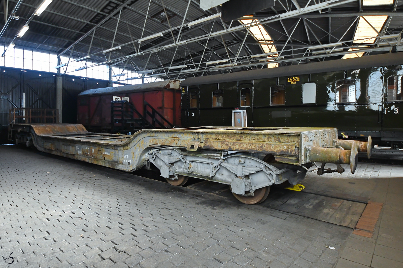 Diese auf einem Flachwagen gestellte Motorhaube stammt vermutlich von der 1939 gebauten Diesellokomotive V36 231. (Eisenbahnmuseum Bochum, April 2025) Christian Bremer