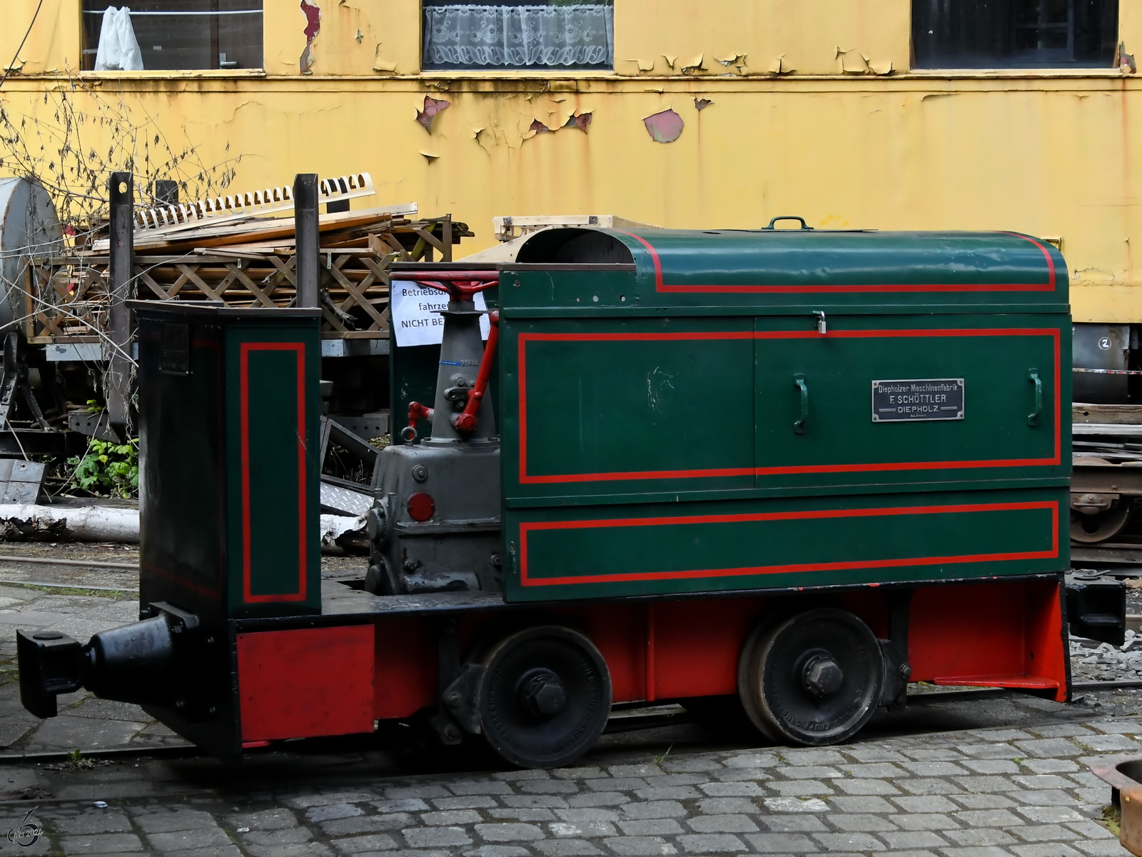 Die Kleindiesellokomotive 322 025-8 wurde im Jahr 1937 bei der Berliner Maschinenbau-Actien-Gesellschaft gebaut und an die Beschaffungsstelle für Flughafenbau in Berlin übergeben. (Eisenbahnmuseum Bochum, April 2024) Christian Bremer