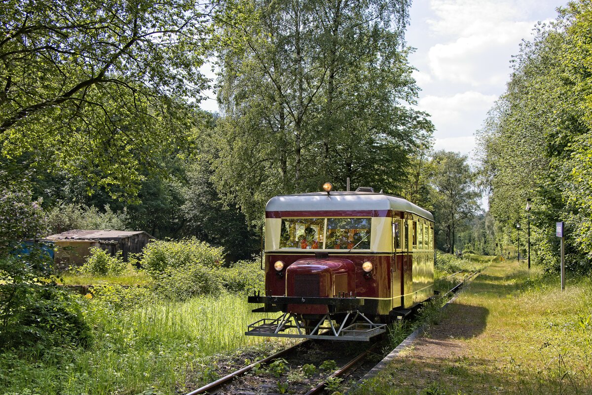 Schienenbus T2 des Eisenbahnmuseums Bochum-Dahlhausen, vormals Bremen-Thedinghauser Eisenbahn, kurz vor dem Bahnhof Zeche Nachtigall (14.05.2022) Lukas Sanders