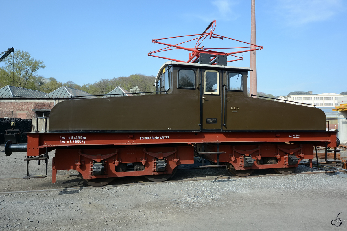 Die Elektrische Gleichstromlokomotive LPD Berlin Nr.3 von AEG wurde im Jahre 1913 gebaut. (Eisenbahnmuseum Bochum-Dahlhausen, April 2018) Christian Bremer