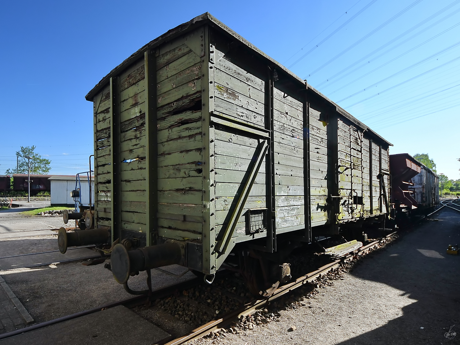 Dieser gedeckte Güterwagen der Verbandsbauart (Gm / G 10 / 631) wurde später zu einem Gerätewagen (30 80 945 4 327-6) umfunktioniert. (Eisenbahnmuseum Bochum, April 2025) Christian Bremer