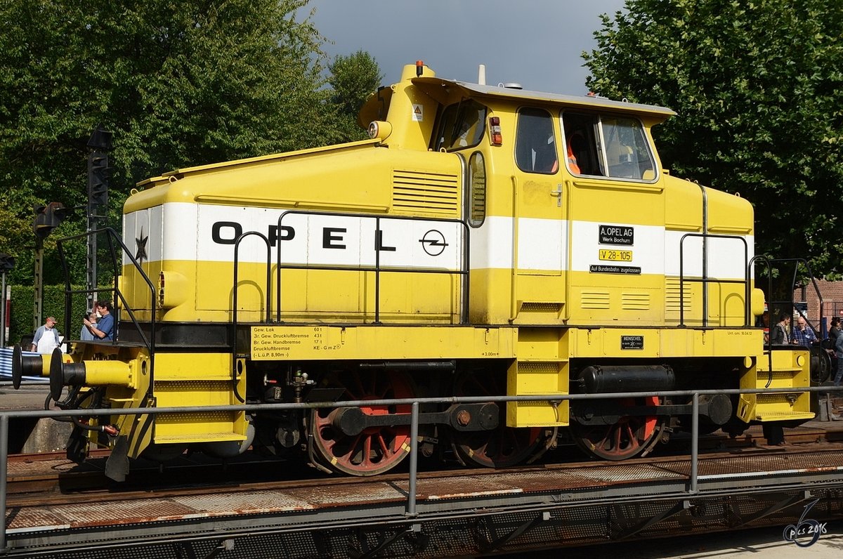 Die Lokomotive Henschel DH500Ca (V28-105) des ehemaligen Bochumer Opelwerkes. (Eisenbahnmuseum Bochum, September 2016)