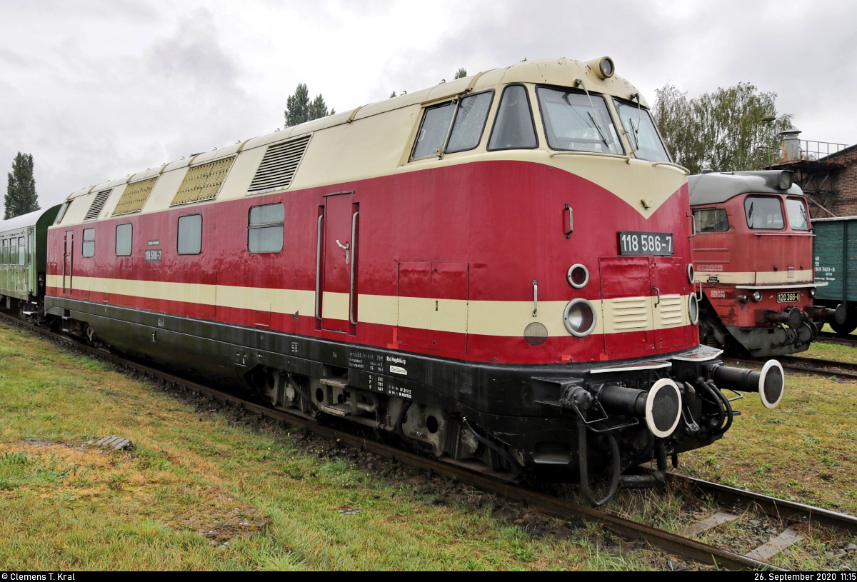 228 586-4 (118 586-7 | 118 086-8 | DR V 180 086) steht während des Herbstlokfests auf dem Gelände des Lokschuppen Staßfurt.