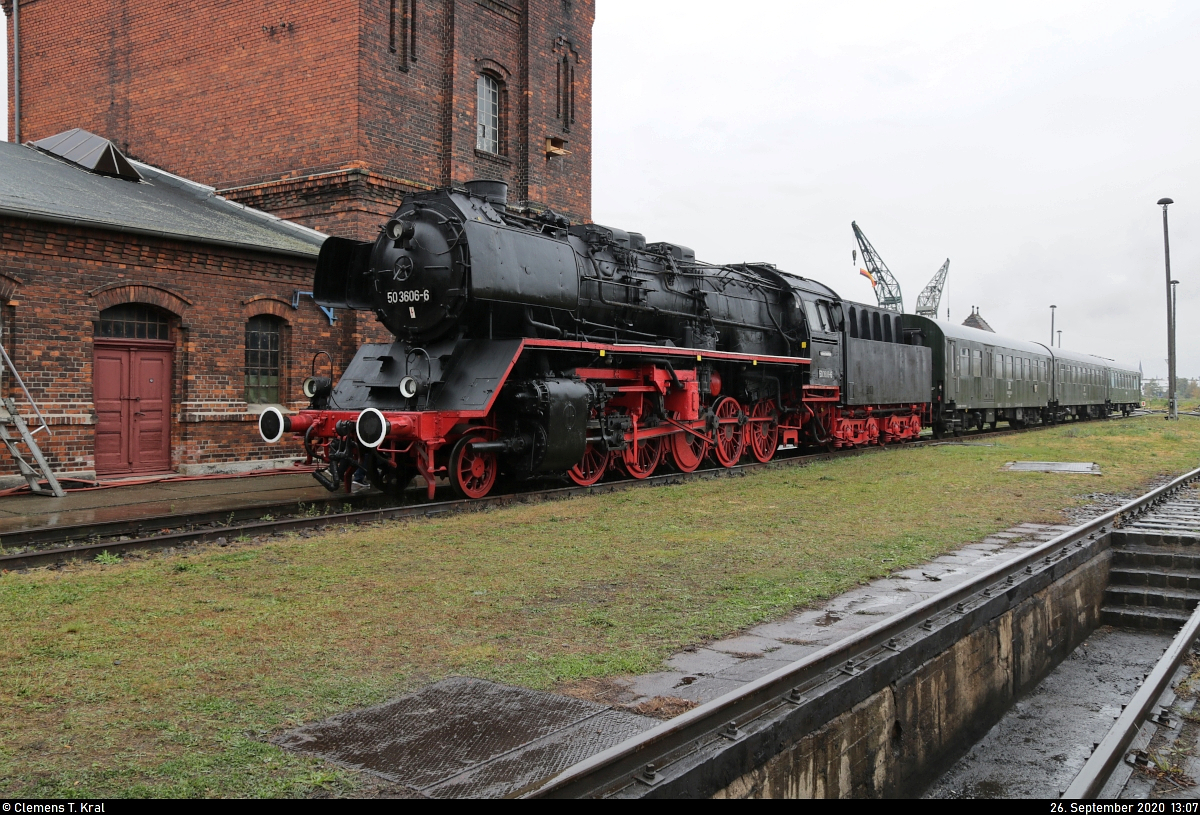 50 3606-6 (050 606-3 | 50 3606 | 50 2637 | 50 2637 ÜK) steht während des Herbstlokfests auf dem Gelände des Lokschuppen Staßfurt.