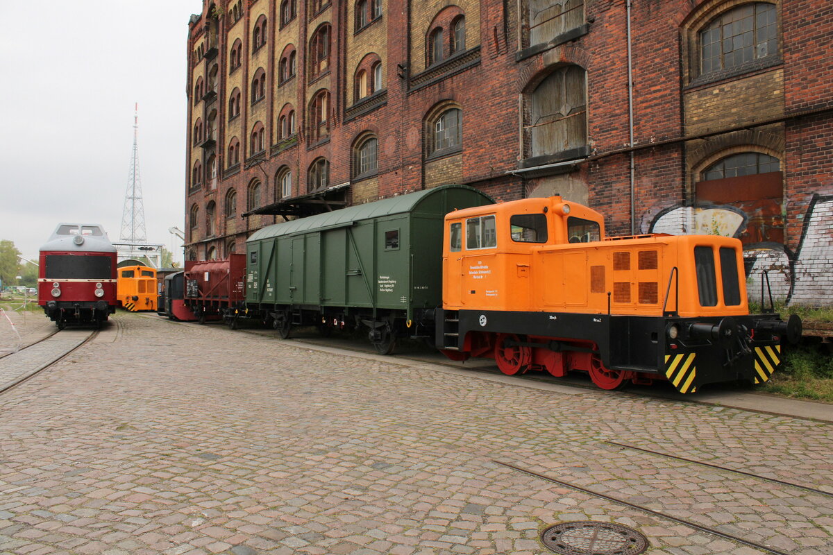 ex VEB Binnenhäfen Mittelelbe Hafenbahn Schönebeck/E Werklok Nr. 1 (LKM 252010) der Magdeburger Eisenbahnfreunde, am 06.05.2023 beim Familienfest im Wissenschaftshafen Magdeburg. Frank Thomas