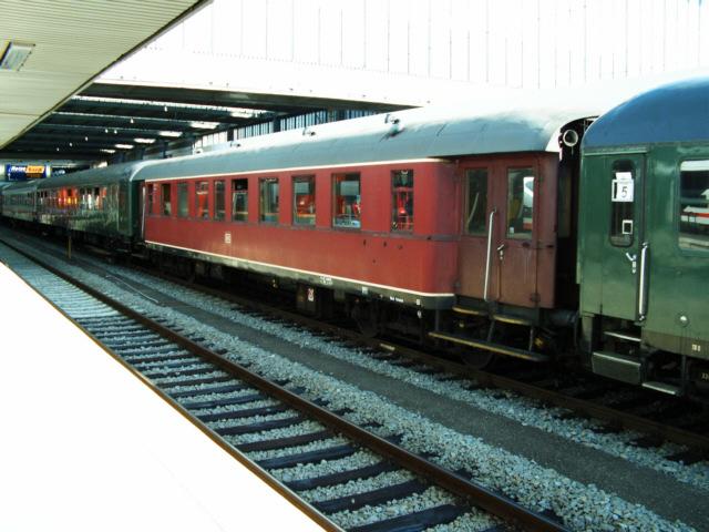 Ein historischer Personenzug im Ulmer Hauptbahnhof. Neuzeitliche Dinge lassen sich nicht aus dem Bild ausblenden. Ein Triebwagen heutige Bauart spiegelt sich im Speisewagen, die Zugzielanzeiger sind heute mit in den 1920iger unvorstellbarer Technik ausgeführt, den Bahnsteig musste man damals wie heute vom Schnee befreien, aber solche Schutzjacken gab es seinerzeit wohl nicht. Und dass heute fast jeder ein Telefon mit sich herum trägt und damit sogar Lokomotiven fotografiert, wäre damals undenkbar gewesen.