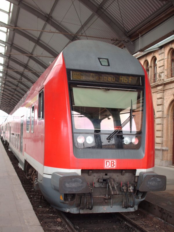 RE nach Lutherstadt Wittenberg mit einem Steuerwagen der Bauart DBpza in Dessau Hbf.