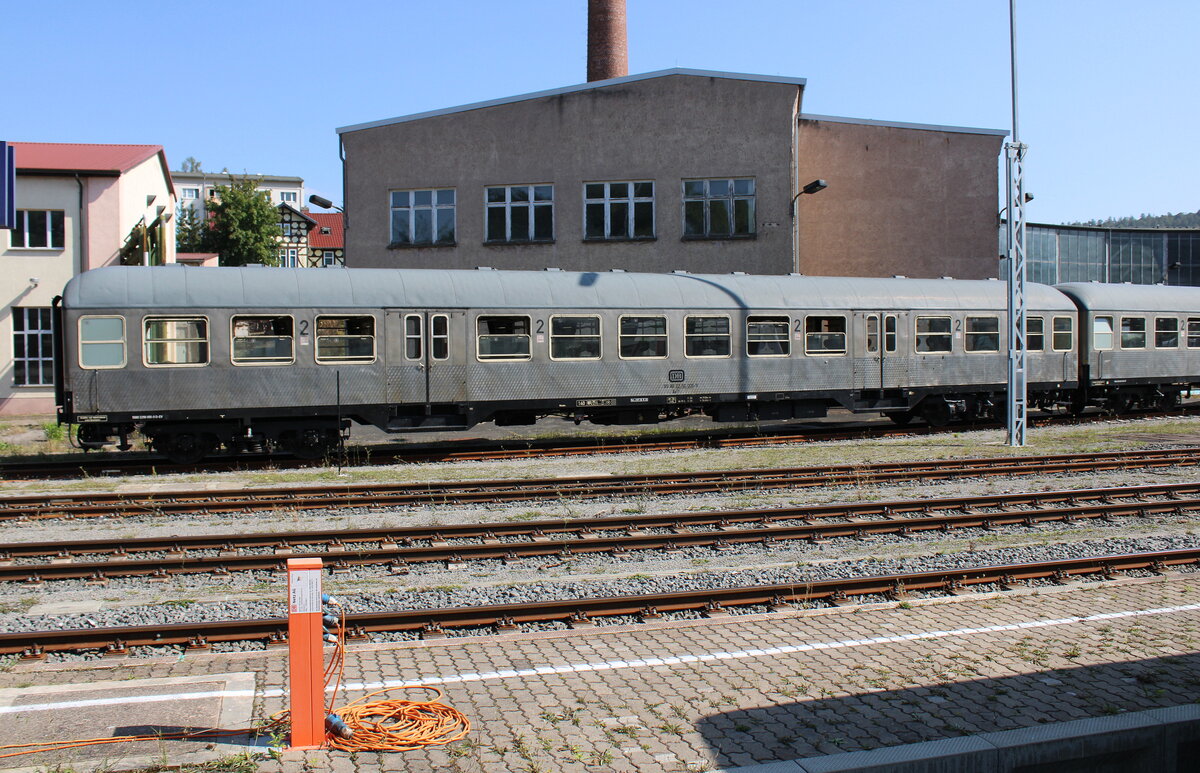 Am 07.09.2024 pausierten die Eurovapor-Wagen DB 55 80 22-50 005-9 Bn 723 D-EV und DB 55 80 22-50 001-8 Bn 723 D-EV im Bahnhof Meiningen. Sie kamen zuvor mit einem Sonderzug zu den Dampfloktagen. Frank Thomas