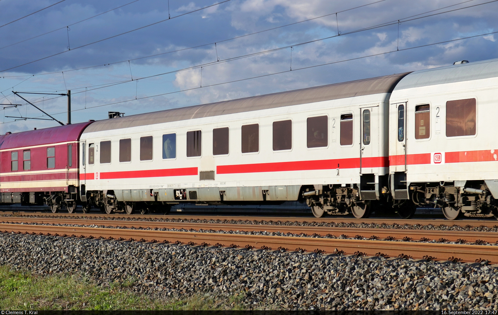 Ehemaliger IC-Abteilwagen mit der Bezeichnung "Bwmz 111.2" (61 80 29-95 214-9 D-SEL), eingereiht in einem Müller-Partyzug mit 111 212-7 "Loreley" und fotografiert bei Benndorf (Kabelsketal). Auch alle anderen drei Wagen dieser Bauart, die die SEL besitzt, hingen an dem Sonderzug. 🧰 Martin Schlünß Eisenbahnlogistik (SEL) | Euro-Express Sonderzüge GmbH & Co. KG für Müller-Touristik GmbH & Co. KG 🚝 MT 1872 Köln Hbf–Flughafen Leipzig/Halle [+105] 🕓 16.9.2022 | 17:47 Uhr