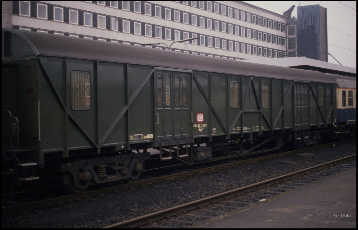 Es waren harte Wintertage im Jahr 1987. Am 13.1.1987 sieht man das deutlich am Rollmaterial der Bundesbahn im Hauptbahnhof Osnabrück. Neben dem Behelfspackwagen steht um 13.31 Uhr abfahrbereit 211015 mit dem Nahverkehrszug nach Bramsche. Gerd Hahn
