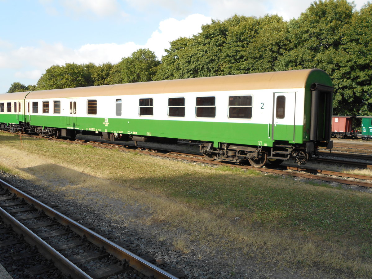 Blick auf einen Abteilwagen "Am 201" (56 80 10-40 203 6 D-IGEW) des IGE Werrabahn Eisenach e.V., der im Eisenbahnmuseum Leipzig-Plagwitz des Verein Eisenbahnmuseum Bayerischer Bahnhof zu Leipzig e.V. steht. [5.5.2018 | 19:47 Uhr] Clemens Kral