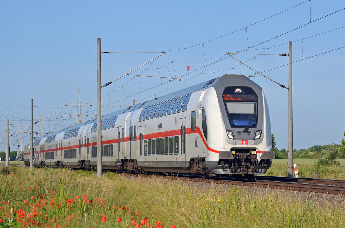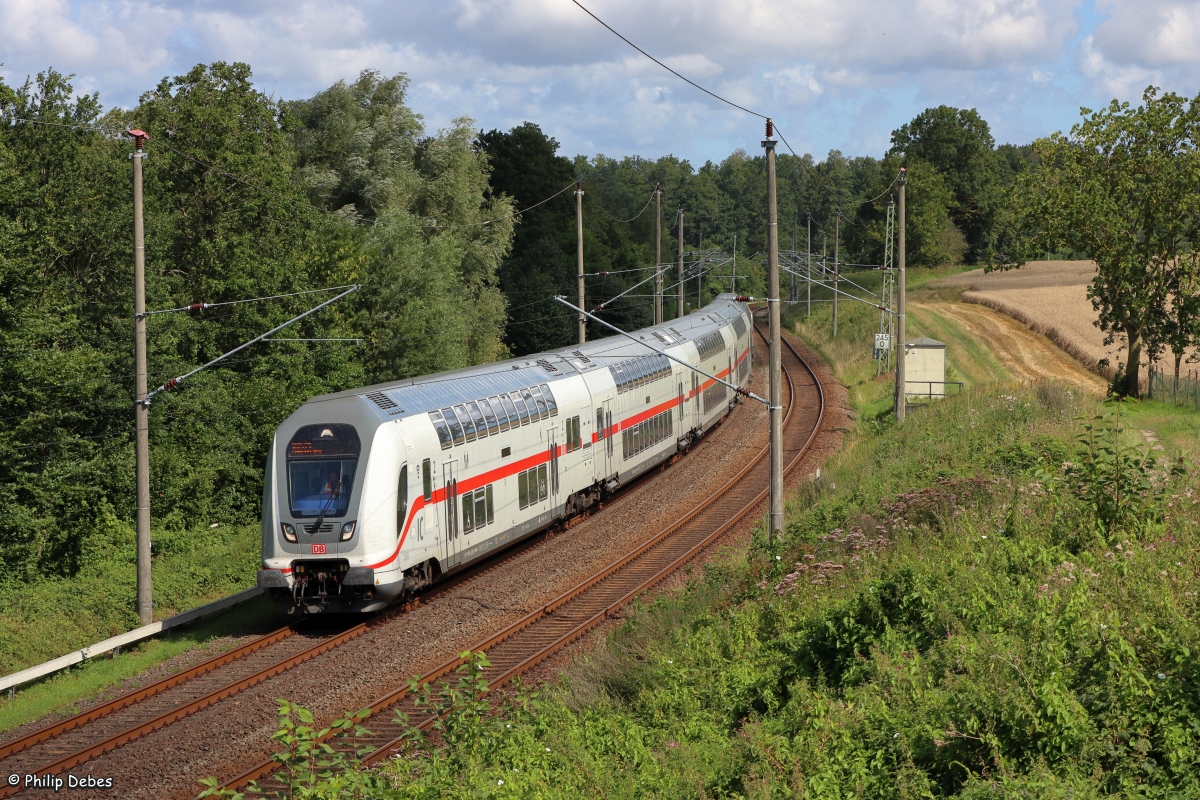 Der Dosto-IC Triebzug 2870 wurde am 23.08.2025 von DB 146 575-6 über die Sachsen-Magistrale von Dresden durch Niederwiesa nach Chemnitz geschoben. Matthias Kümmel