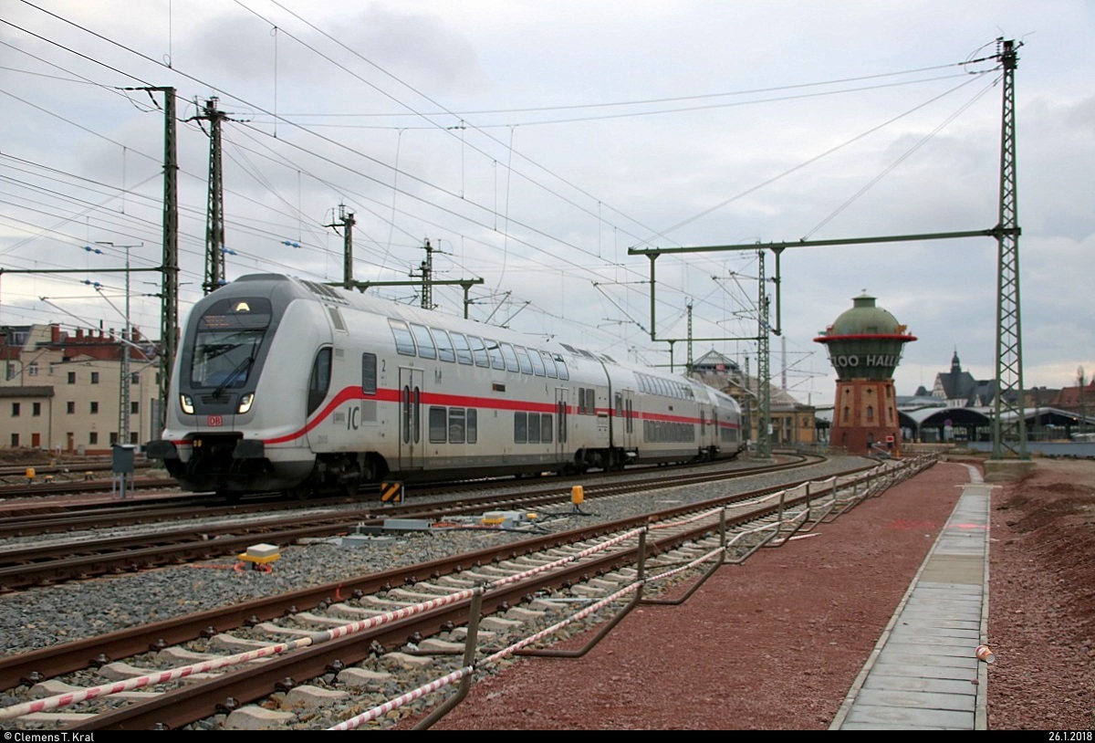 DBpbzfa 668.2 mit Schublok 146 568-1 DB als IC 2442 (Linie 55) von Dresden Hbf nach Köln Hbf durchfährt das Gleisvorfeld von Halle(Saale)Hbf neben dem markanten Wasserturm. Aufgenommen von der Delitzscher Straße. [26.1.2018 | 15:13 Uhr] Clemens Kral