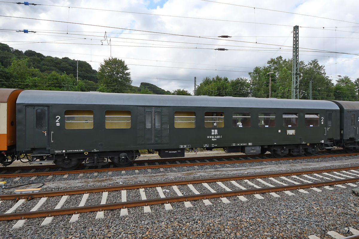 Dieser kurze Personenzug wurde für eine Sonderfahrt zusammengestellt und war im September 2020 auf dem Gelände des Sächsischen Eisenbahnmuseums in Chemnitz-Hilbersdorf zu sehen.