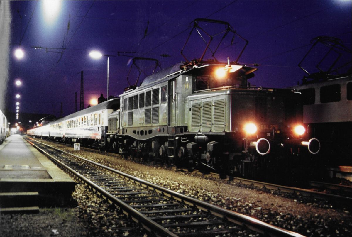 Im Bild ein 1954 gebauter Touropa-Liegewagen (CL4ümg-53 / Essen 17 656 / 51 80 52 40 224-6) und die 1942 gebaute Elektolokomotive E94 080. (Eisenbahnmuseum Bochum, April 2025) Christian Bremer