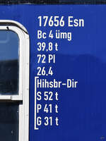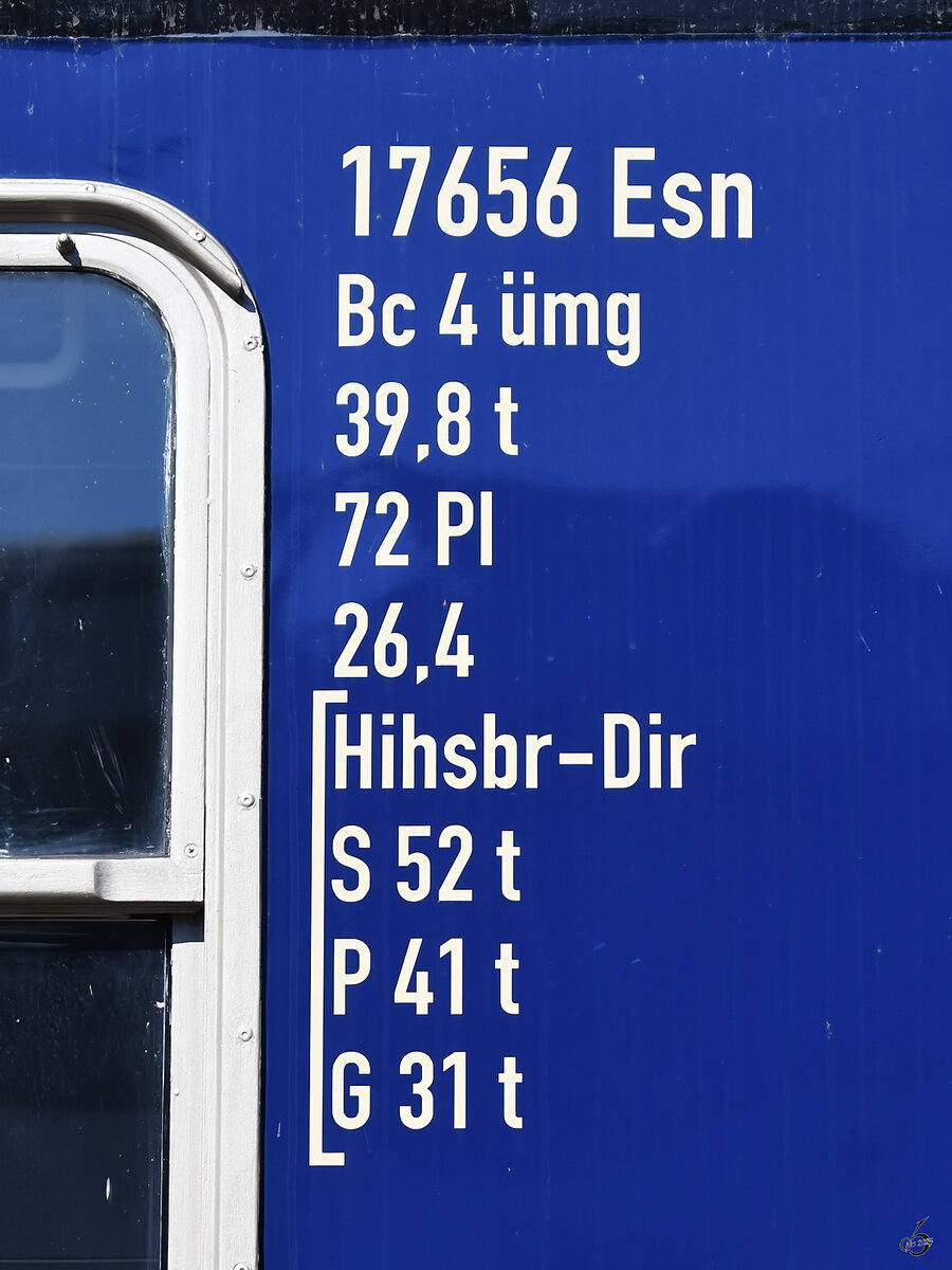 Gesellschaftswagen im Krombacher-Style mit der Bezeichnung "WGm" (56 80 89-80 009-4 D-EURO), eingereiht in einem Sonderzug Richtung Halle (Saale) mit 101 128-7 und fotografiert in Niemberg.