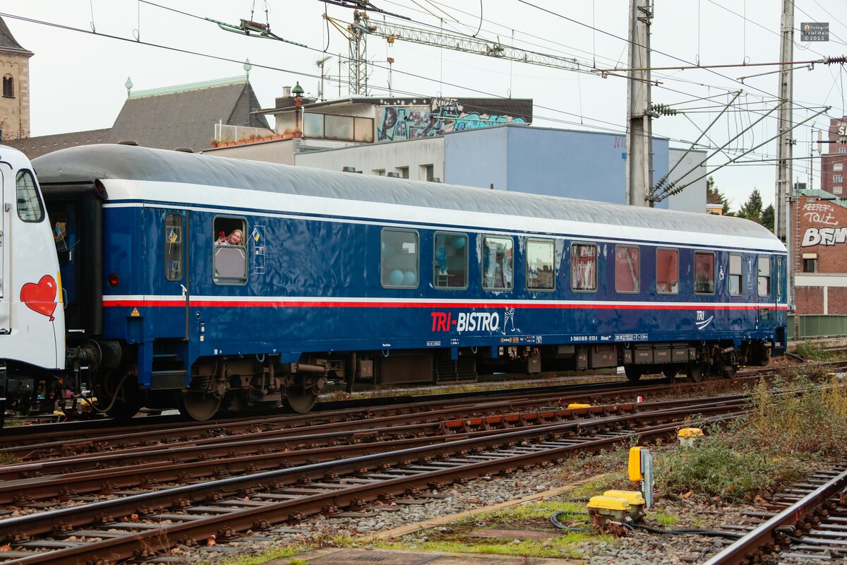 Ehemaliger CityNightLine CNL Liegewagen mit Packabteil., jetzt Eigentum DB Museum Standort DB Training, Learning & Consulting Trainingszentrum Delitzsch mit der Nr. D-DB 61 80 82-90 405-2 BDcm 874.1 in einem Sonderzug am 31.01.25 gesichtet Höhe Bahnhof Berlin-Karow. Lothar Stöckmann