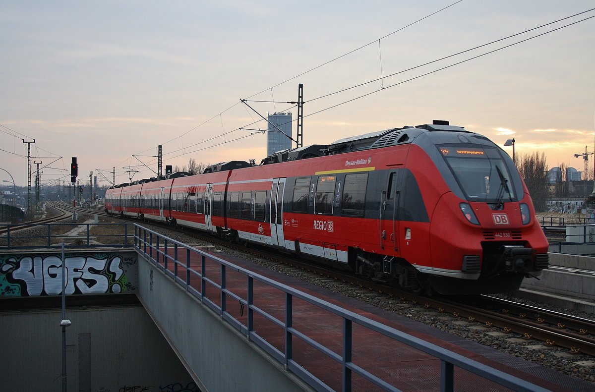 442 330-7 "Dessau-Roßlau" verlässt am 12.2.2017 als RB24 (RB18364) von Eberswalde Hauptbahnhof nach Senftenberg den Bahnhof Berlin Ostkreuz. Alexander