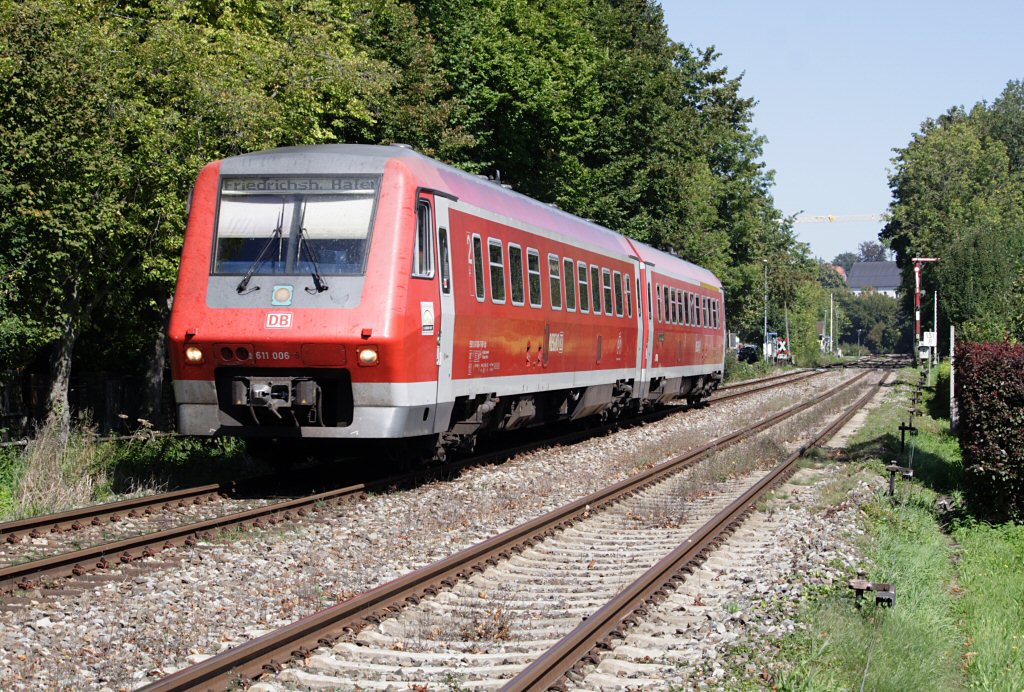 Eine 612er Doppeltraktion verlässt am 28. August 2011 als RB von Pressig-Rothenkirchen nach Bamberg den Haltepunkt Neuses (bei Kronach). Frankenwaldbahner