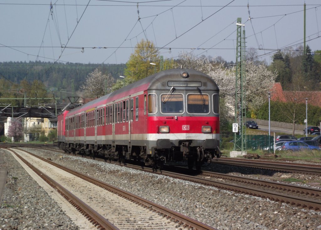 Zwei n-Wagen Garnituren treffen sich am 29. April 2011 jeweils als RB nach Bamberg in Kronach. Während die linke Garnitur pünktlich auf Gleis 4 auf die Ausfahrt wartet, verlässt die rechte Garnitur Kronach mit einer Verspätung von rund 70min wegen einer Streckensperrung kurz nach Saalfeld. Auch der darauffolgende RE hatte 30min Verspätung. Frankenwaldbahner