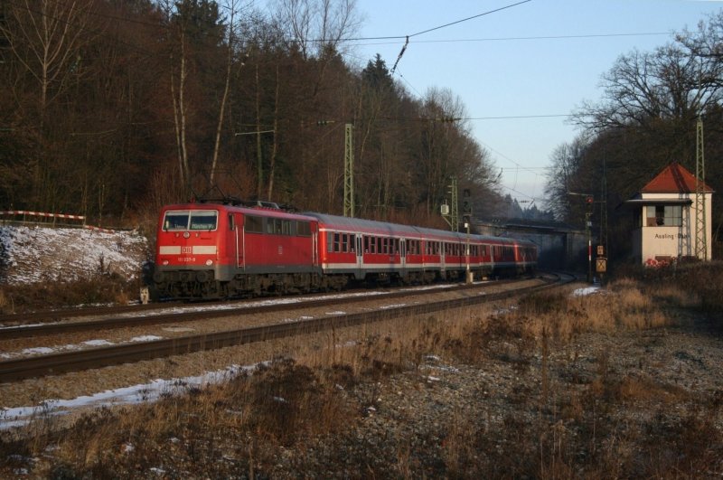 111 037 mit RE 30014 am 29.11.2008 in Aßling.