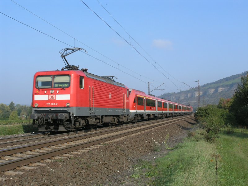112 148 zieht den RE Würzburg kurz vor Thüngersheim.27.09.08