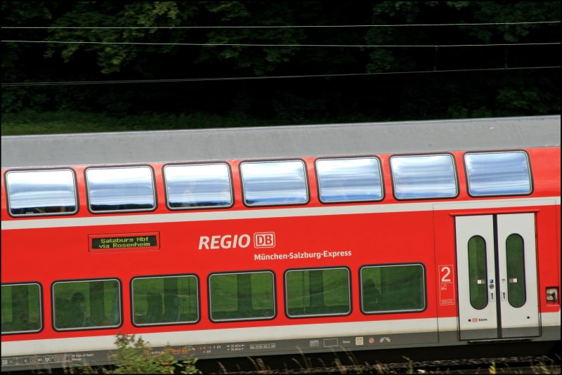 RB 30016 "München-Salzburg-Express" ist von Salzburg Hbf nach München Hbf unterwegs. Schublok war die 111 027. (09.07.2008)