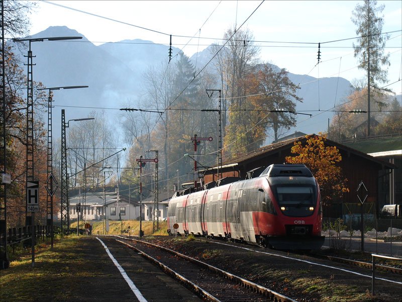 Ein ÖBB 4023 als RB 5060 Berchtesgaden - Schwarzach-St.Veit bei Einfahrt in Bischofswiesen am Morgen des 27.10.2008