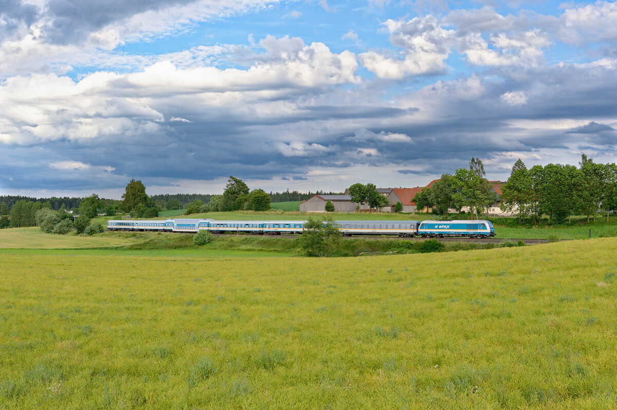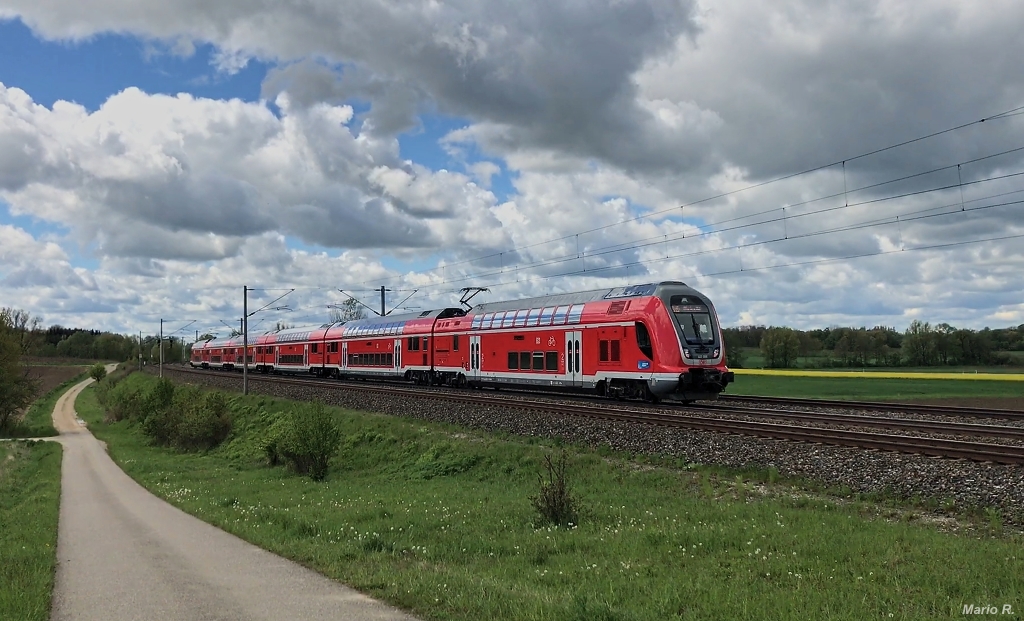 Die Züge des Ringzug West werden planmässig aus zwei Triebköpfen der Baureihe 445 und zwei bis vier Mittelwagen gebildet. Eine sechsteilige Garnitur, war am 14.5.2021 als RB16 auf dem Weg nach München Hbf und konnte bei Asbach aufgenommen werden. Mario Rossi