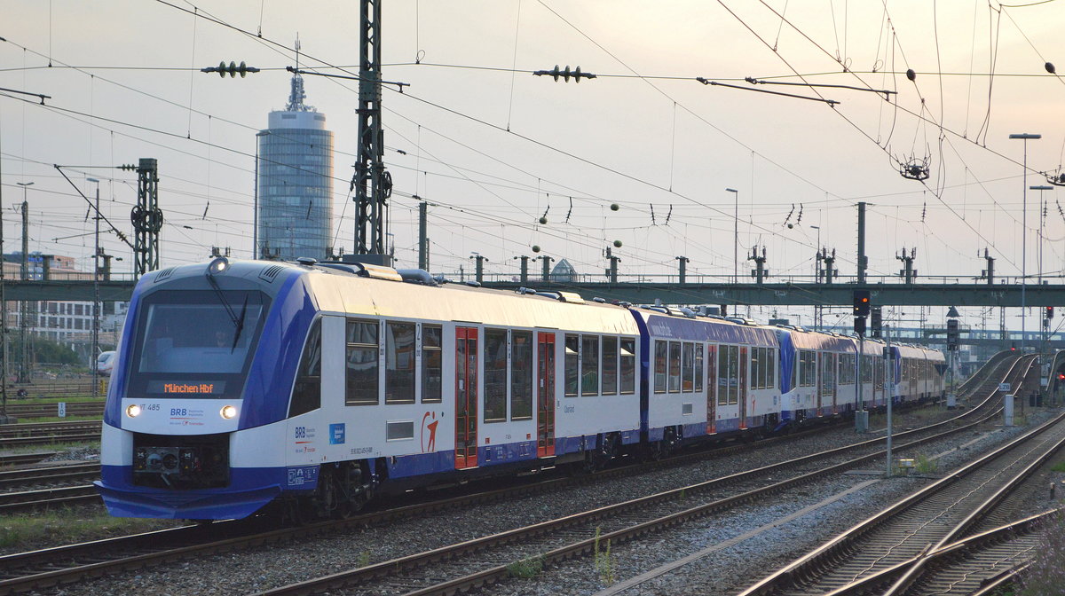Die Bayerische Regiobahn (BRB) mit einem Doppelgespann LINT 54, VT 485 (NVR.: 95 80 0622 485-0 D-BOBY) + VT ??? am frühen Abend des 11.08.20 Einfahrt München Hbf. Lothar Stöckmann