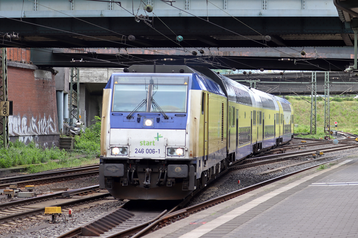 Regionalverkehre START GmbH mit der "246 005-3" (NVR: "92 80 1246 005-3 D-BTH") mit dem RE 5 aus Cuxhaven bei der Einfahrt Bahnhof Hamburg-Harburg am 09.07.24 Lothar Stöckmann