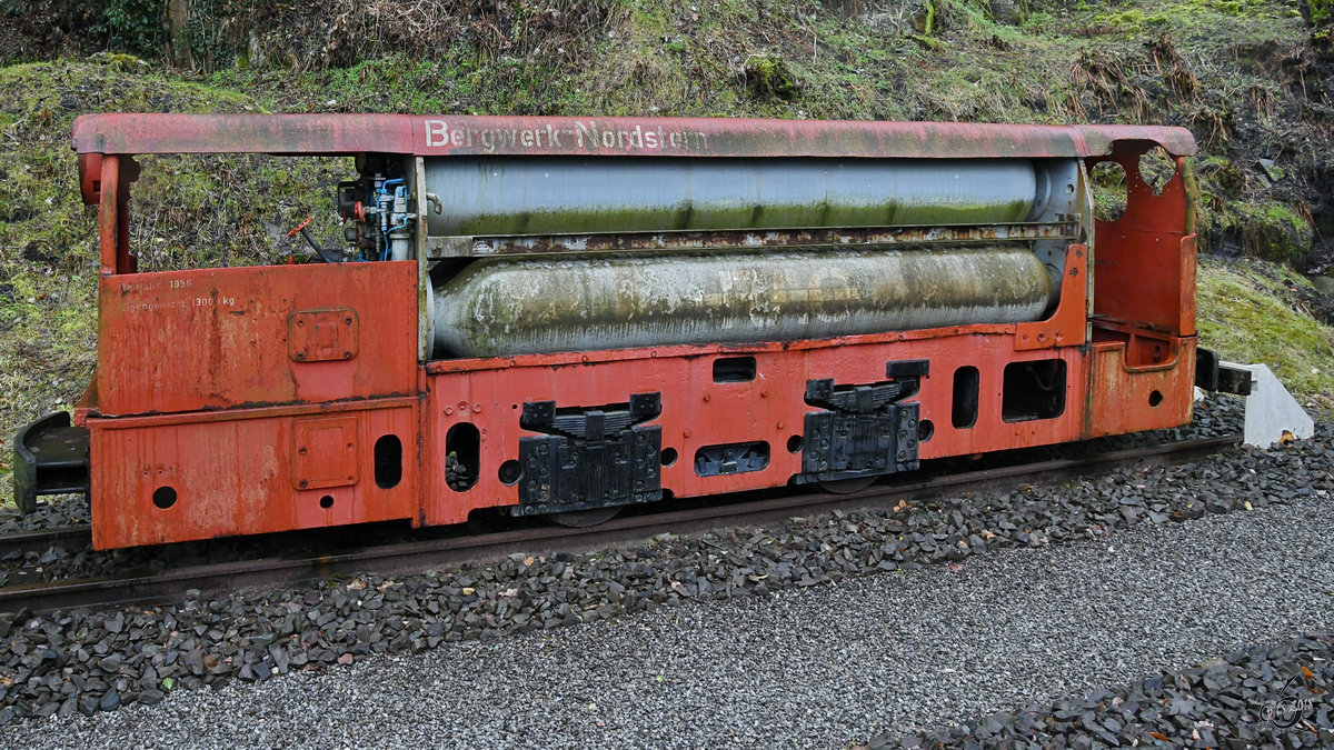Eine Pressluftlokomotive Jung 13848/1964, Typ Pz 45, ex Ruhrkohle AG, Bergwerk Nordstern, Gelsenkirchen/Horst im Gruben- und Feldbahnmuseum Zeche Theresia. (Witten, April 2018) Christian Bremer
