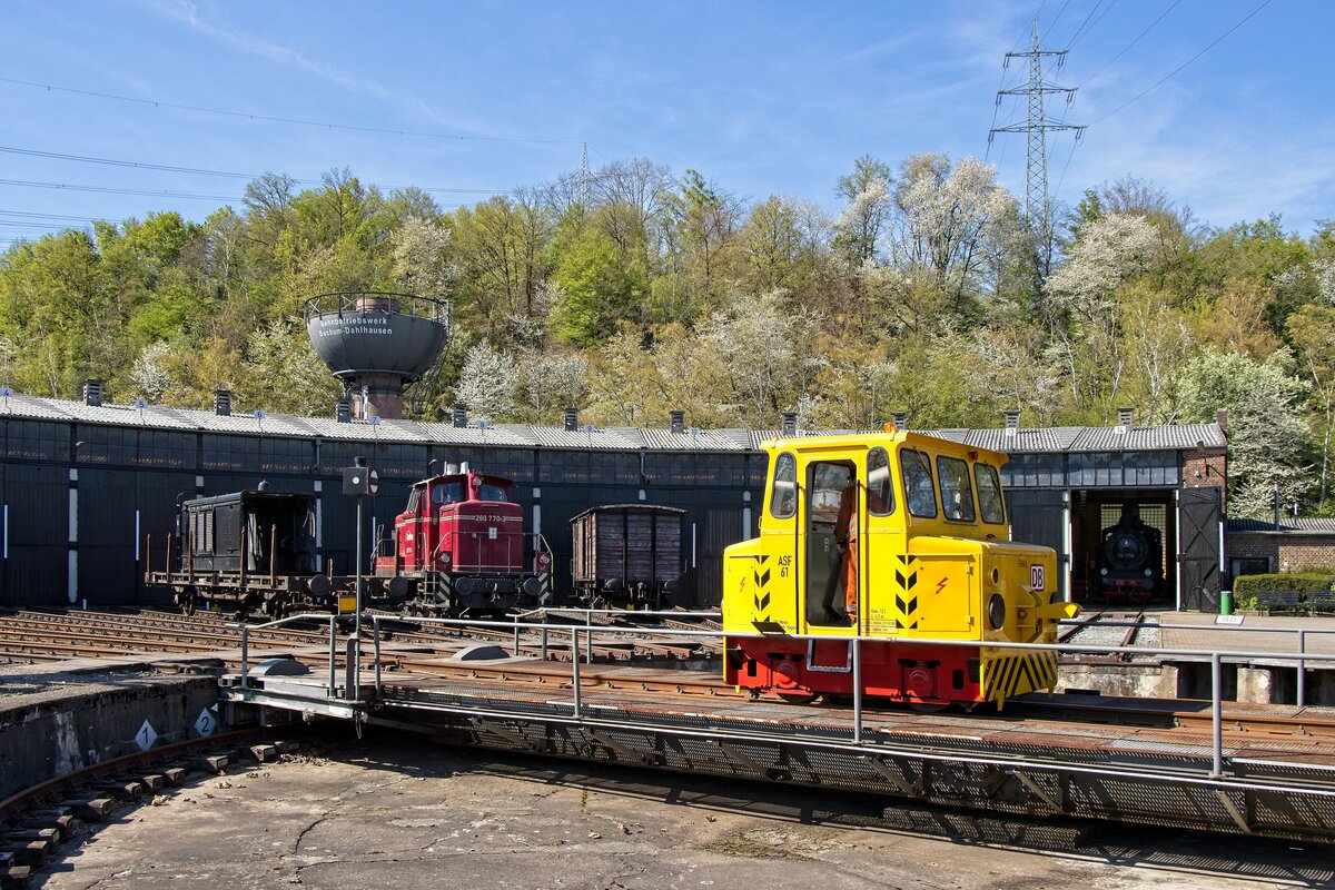 ASF 61 "Emma" mit 74 1192 auf der Drehscheibe des Eisenbahnmuseums Bochum-Dahlhausen, um diese wieder in den Ringlokschuppen zu schieben (15.04.2022) Lukas Sanders