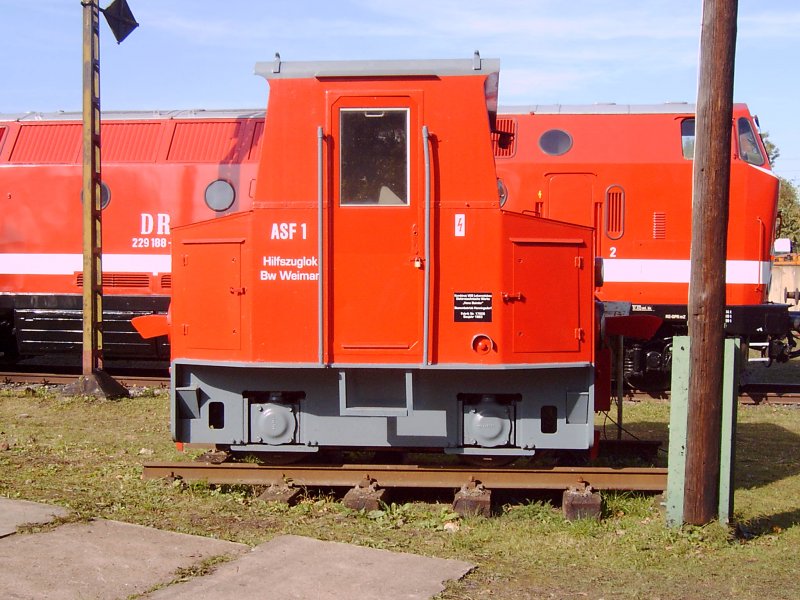ASF Lok 1 des BW Weimar steht am Eingang auf einen Stückchen Gleis.Sie war eine von 4 ASF Loks an diesen Tag.Die anderen 3 standen an der Drehscheibe. Heiko Neumann