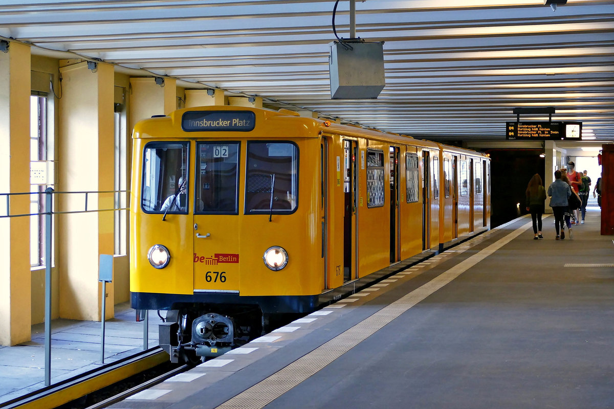 Vom Parkhaus am Gleisdreieck konnte ich den Triebzug 668 aufnehmen. Der Zug hat soeben die Station Mendelssohn-Batholdy-Park verlassen und erreicht in Kürze Gleisdreieck.