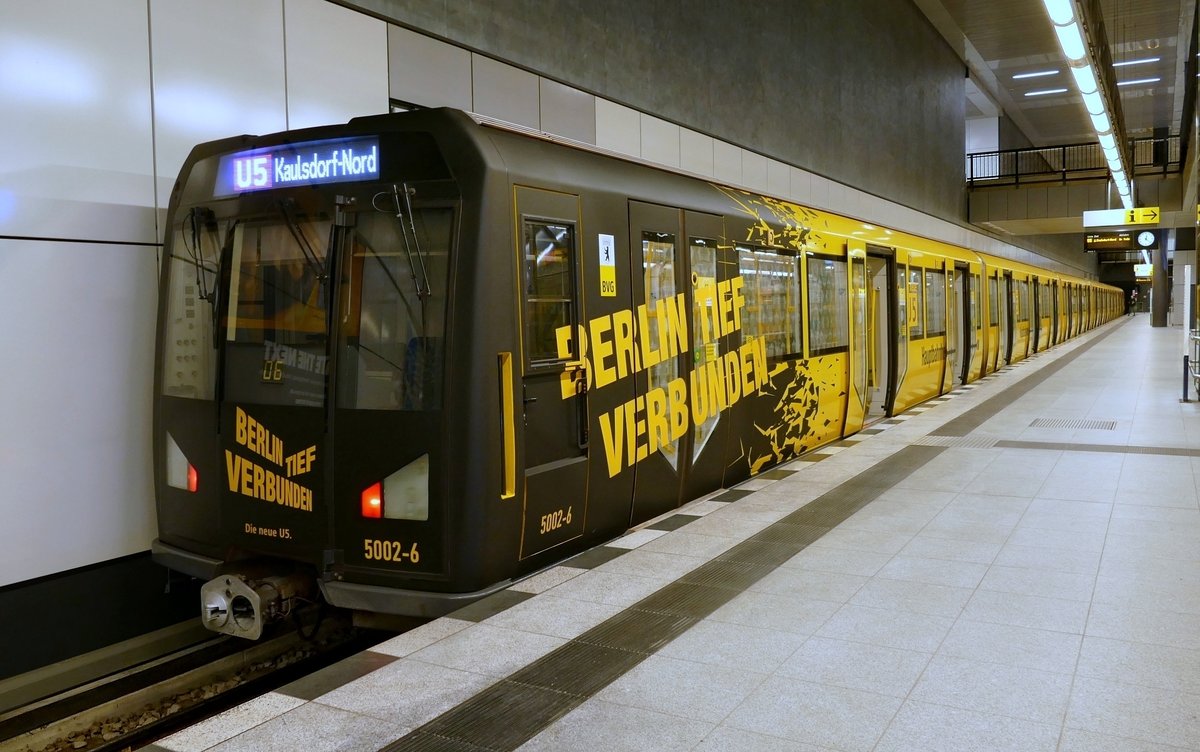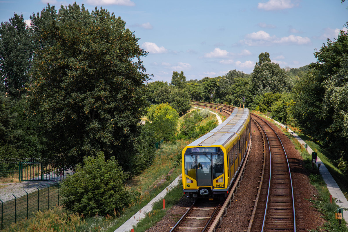 U5 der BVG, hier mit Wagen 5002-6 (Typ H), ''BERLIN TIEF VERBUNDEN - Die neue U5'', mit Fahrtziel Kaulsdorf-Nord. Berlin-Hauptbahnhof, Anfang Dezember 2020. Lugi