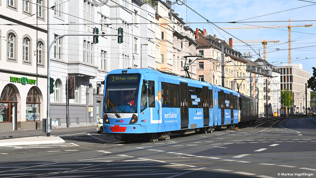 5213 wurde eine neue Ganzreklame "wertfaktor.de" angebracht. Hier zu sehen zusammen mit 5158 auf der Kreuzung Gotenring/Deutz-Kalker-Straße am 29.08.2022. Markus Vogelfänger