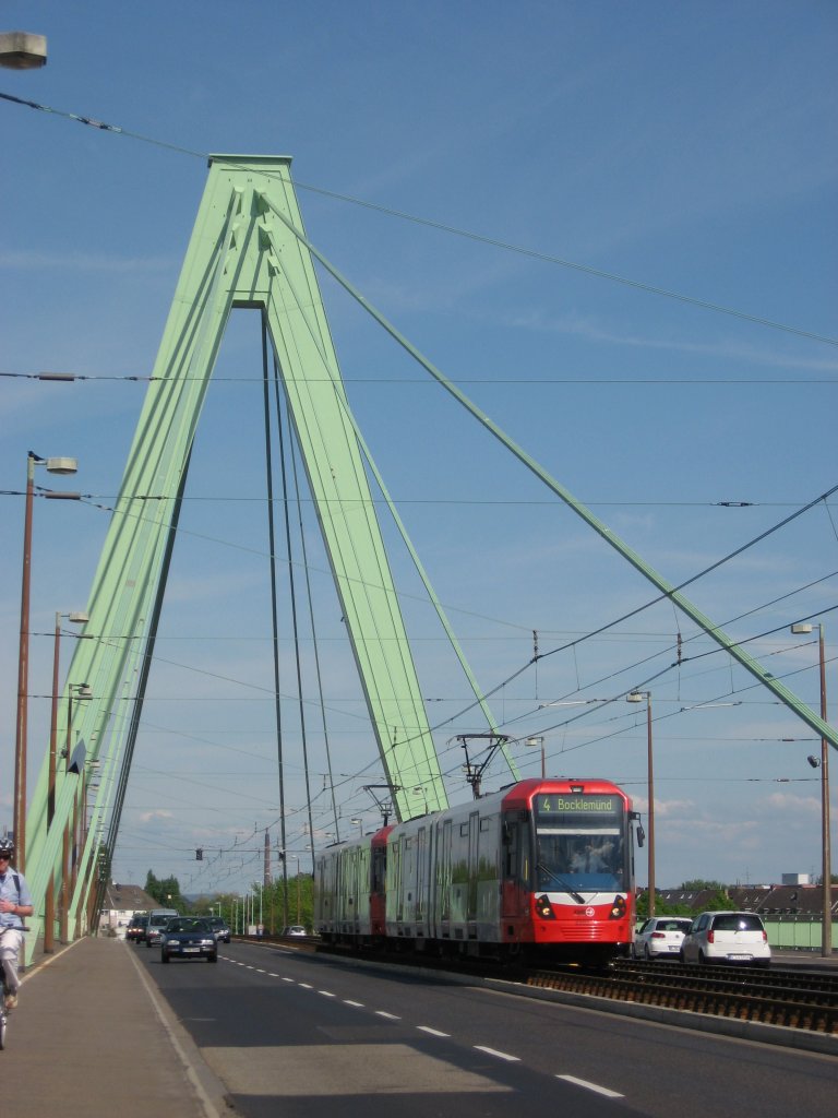 2 unbekannte Wagen aus der Serie K5000 waren am 5.5.13 unterwegs als Linie 4 Fahrtrichtung Bocklemünd. Hier aufgenommen auf der Severinsbrücke. Johannes Schwarz